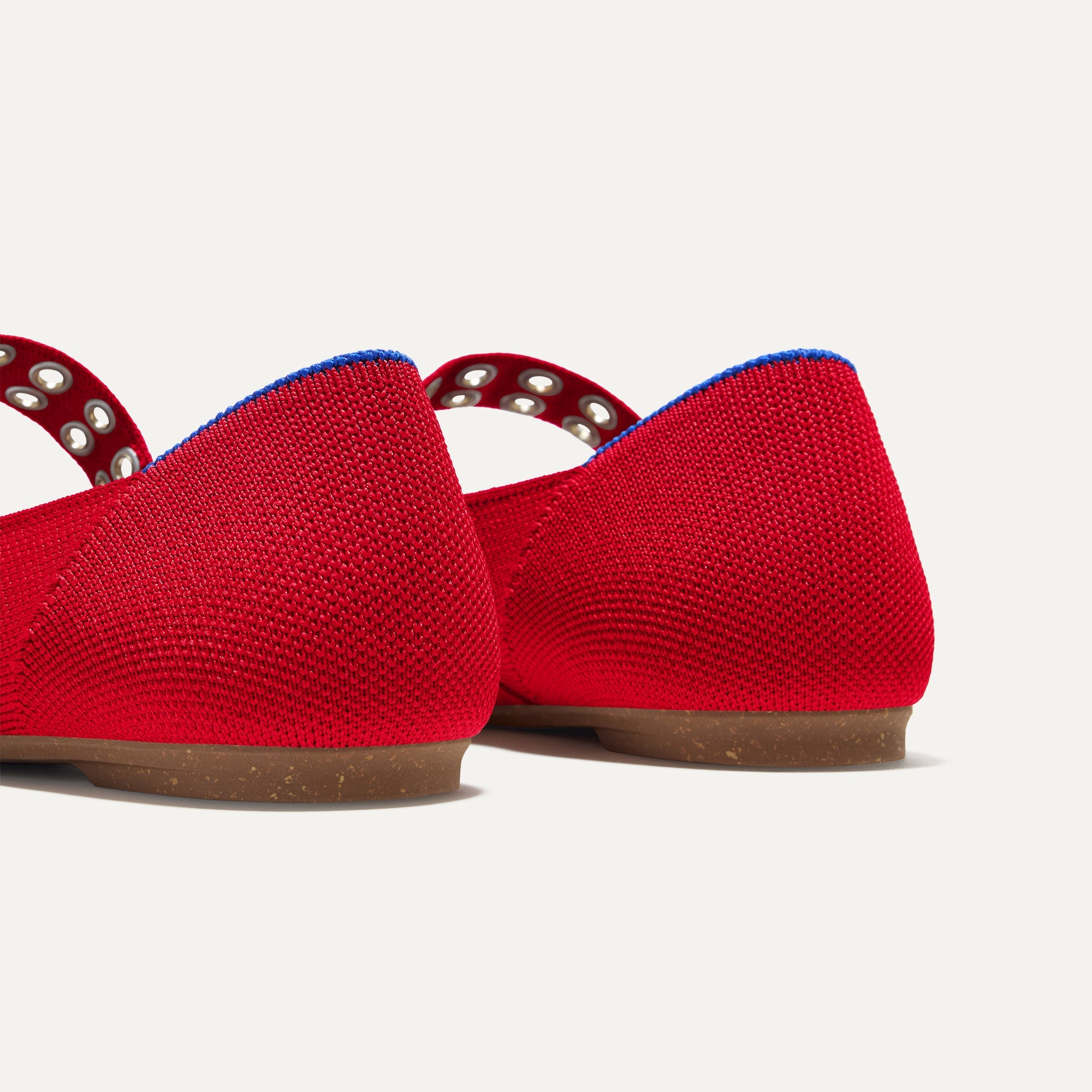 - Knit upper in bright red with a smooth. rounded toe box.
