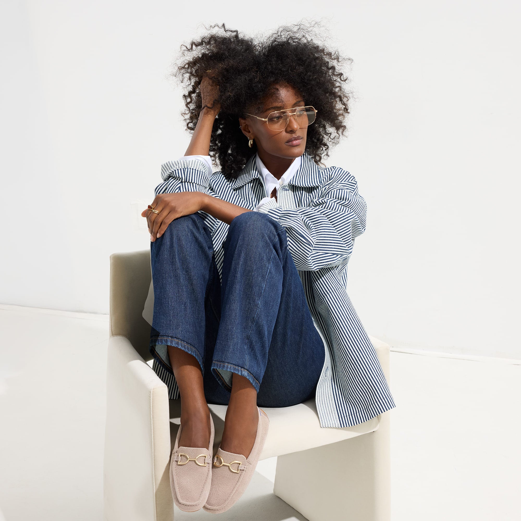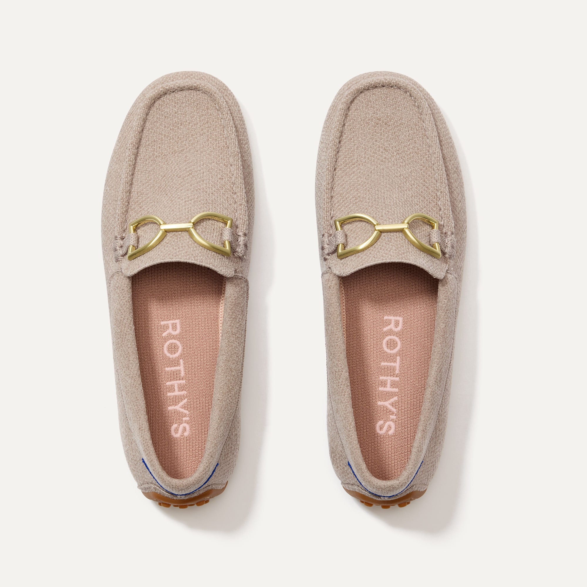 - Soft. flexible upper in cool taupe with a gold hardware signet bit on the vamp.